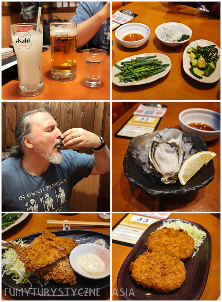 Na stacji kolejowej w Izukyu Shimoda mieliśmy trochę czasu do przyjazdu naszego transportu z hotelu, więc poszliśmy na lunch do kolejowego baru z ostrygami, sashimi i smażoną rybką… *^V^*~~~