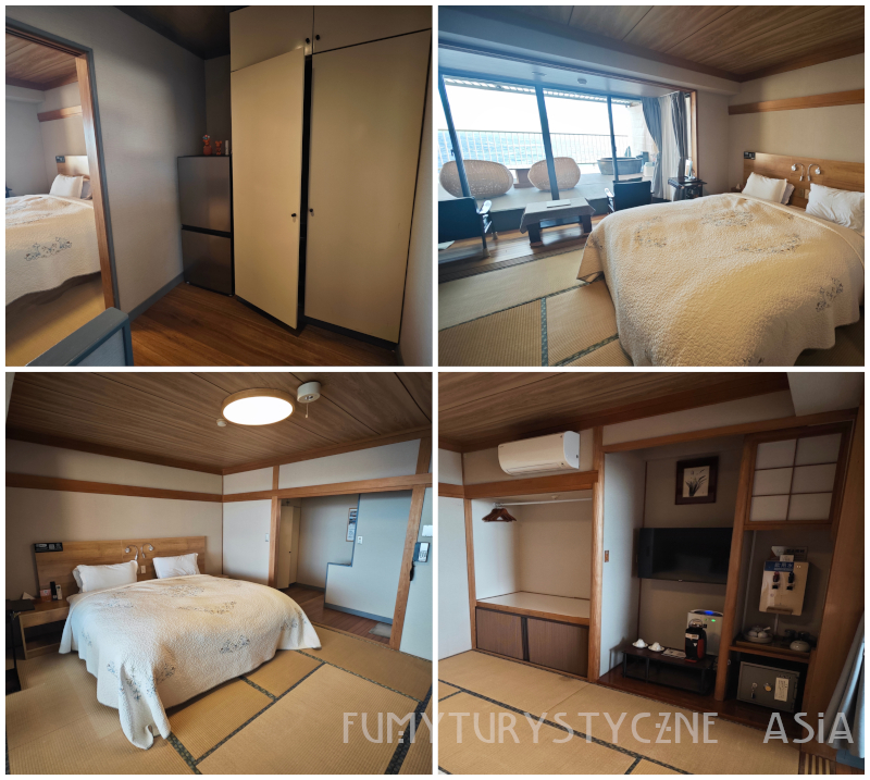 Niestety, jak to mówi stare przysłowie – “lepsze jest wrogie dobrego”, i o ile nie mogę hotelowi zarzucić niczego strasznego, to za tę cenę spodziewałam się doświadczenia na poziomie hotelu w Nasushiobara sprzed dwóch lat, czyli fajnych napojów i przekąsek w pokoju na przywitanie, onsenowego sklepu ze słodyczami i pamiątkami, wypasionego jedzenia, porządnego onsenu dla Roberta (ja nie jestem wielką fanką, no i mam tatuaże, a to często jest przeszkoda w korzystaniu z gorących źródeł czy basenów), innych fikuśności w postaci ping ponga, foteli do masażu, pokoju gier, przekąsek w trakcie dnia w cenie pobytu, itd czyli tych atrakcji które już miewaliśmy w hotelach w Japonii.