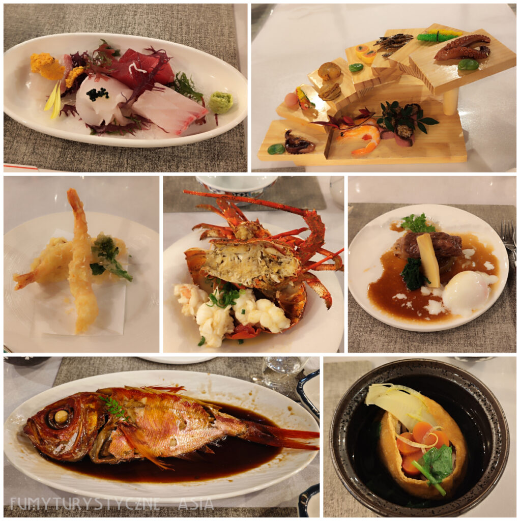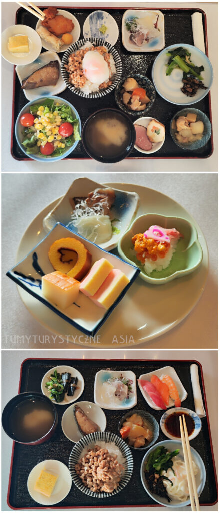 Są różne sposoby serwowania jedzenia w japońskich hotelach – w formie bufetu, czyli wszystko stoi w porcjach i garnkach w jednym miejscu i goście sami sobie nakładają co i ile chcą; cały stół od razu nakryty wszystkimi albo częścią dań, reszta jest donoszona z czasem; albo ostatni sposób – goście siadają do stołu i dania zaczynają wjeżdżać jedne po drugich, puste talerze są zabierane a na ich miejsce pojawiają się kolejne punkty menu. Tutaj mieliśmy do czynienia z ostatnim sposobem, z tym, że….. hotel raczej nie umie w ten sposób serwowania!…