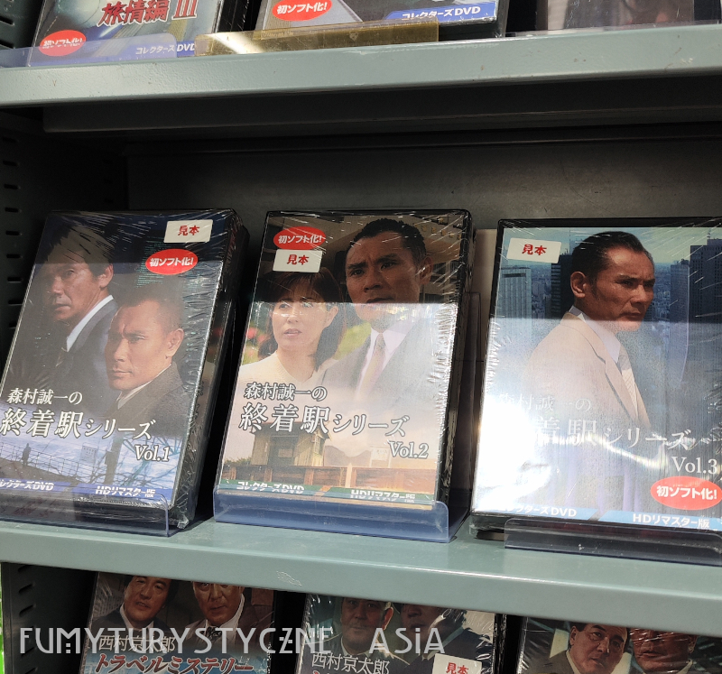 Zobaczcie, na co trafiliśmy w księgarni – mój ukochany kryminalny serial japoński, “Historie ze stacji końcowej” (終着駅シリーズ) na DVD!!! Trochę żałuję, że sobie nie kupiłam, ale to była dziwne wydanie, bo brakowało niektórych odcinków… No nic, następnym razem!