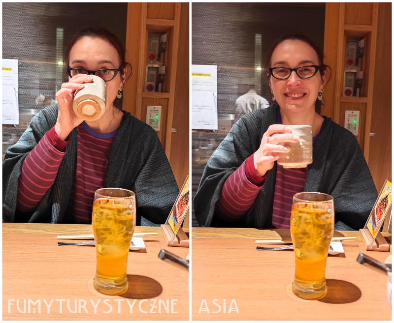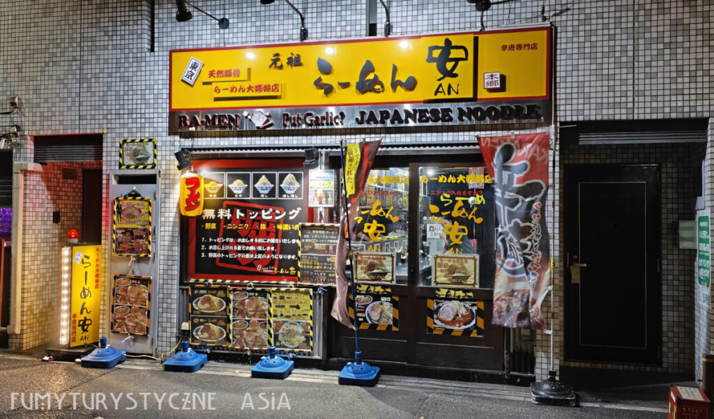 Na kolację poszliśmy do baru z ramenem niedaleko naszego hotelu – Ramen An. Przeczytaliśmy w Sieci, że właściciel jest bardzo pomocny i miły a ramen bardzo dobry, to postanowiliśmy wypróbować. Rzeczywiście, starszy pan prowadzący ten lokal był bardzo miły, bar był automatowy i pan od razu do nas podszedł i wymienił nam nowe tysiącjenówki na stare, bo automat nie przyjmuje tych nowych (spotkaliśmy się z tym w kilku miejscach, z drogerią włącznie, ale w drogerii to był problem pana sprzedawcy!…), dopytał o rozmiar porcji kiełków fasoli mung (były cztery do wyboru, ja wzięłam najmniejszą, Robert – całkiem dużą! *^V^*). Szybko podgrzał makaron, przygotował bazę do bulionu i dodatki, i było bardzo smacznie!