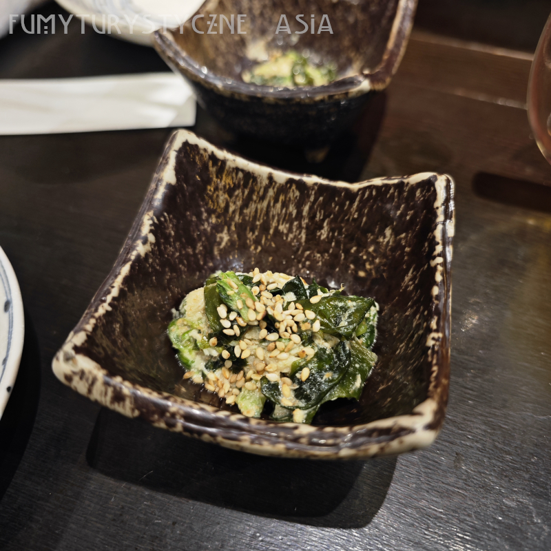 To co tu widzicie to poczekalnik (tzw. otoshi), prawie zawsze dostaje się go w izakayach. Uwaga! To nie jest darmowa przekąska! I jest też obowiązkowa, nie można odmówić i odliczyć sobie od rachunku, to takie stolikowe, kosztuje między 300 a 600 jenów.
