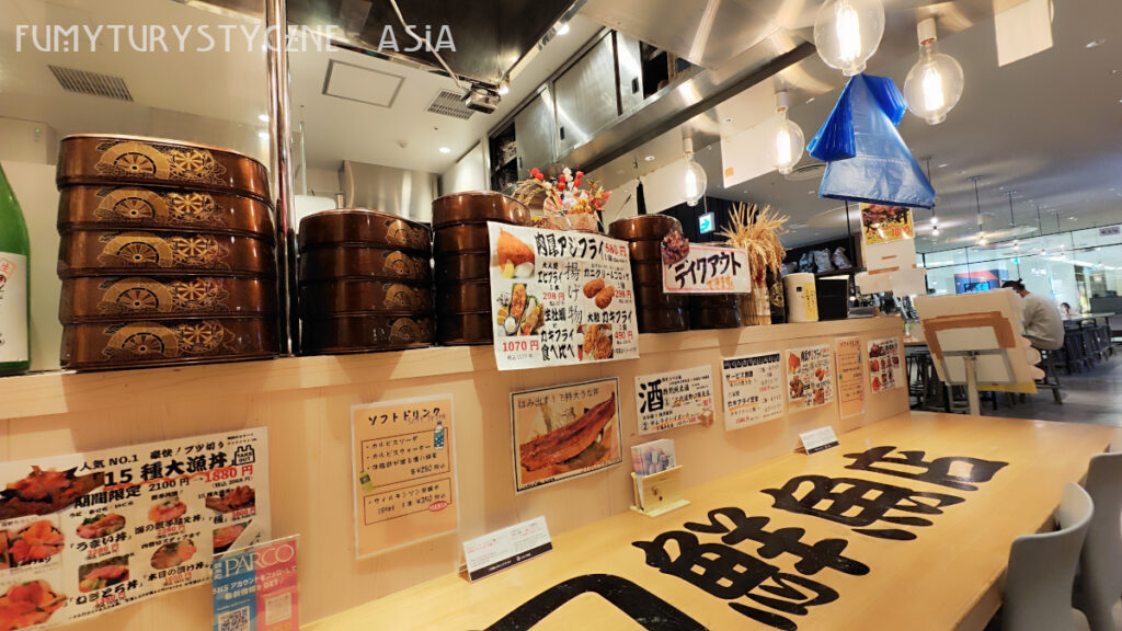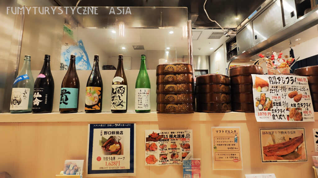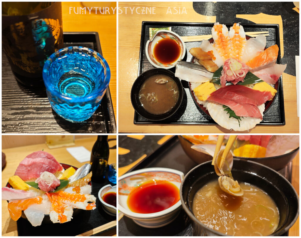 Kiedy przyszedł czas na lunch postanowiliśmy kontynuować naszą nową świecką tradycję i znaleźliśmy bar z rybami na ryżu, a mianowicie Nidaime Noguchi Sengyo Ten Kinshicho Parco Ten. Jedzenie było przepyszne a dodatkowo Robert zamówił nihonshu produkowane pod marką tego sklepu i też było świetne!
